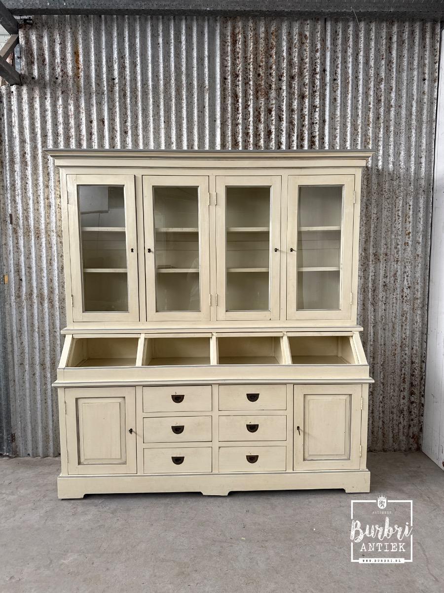Winkelkast Vintage stijl in hout en glas, Europa 20e eeuws, in goede vintage staat staat te koop in Winkelinrichtingen, Antieke winkelkasten | Burbri