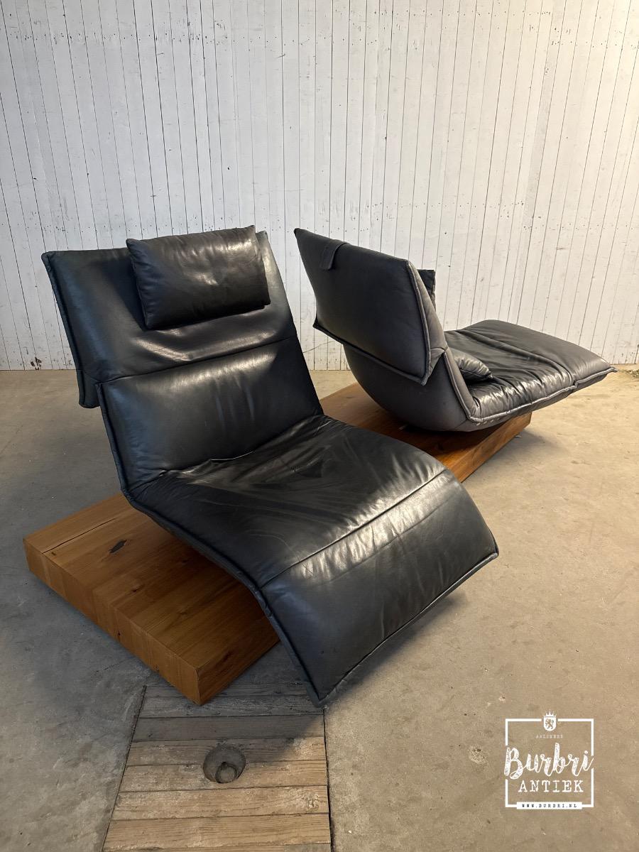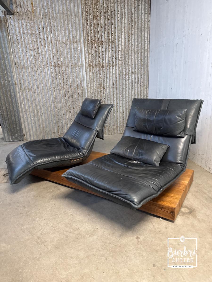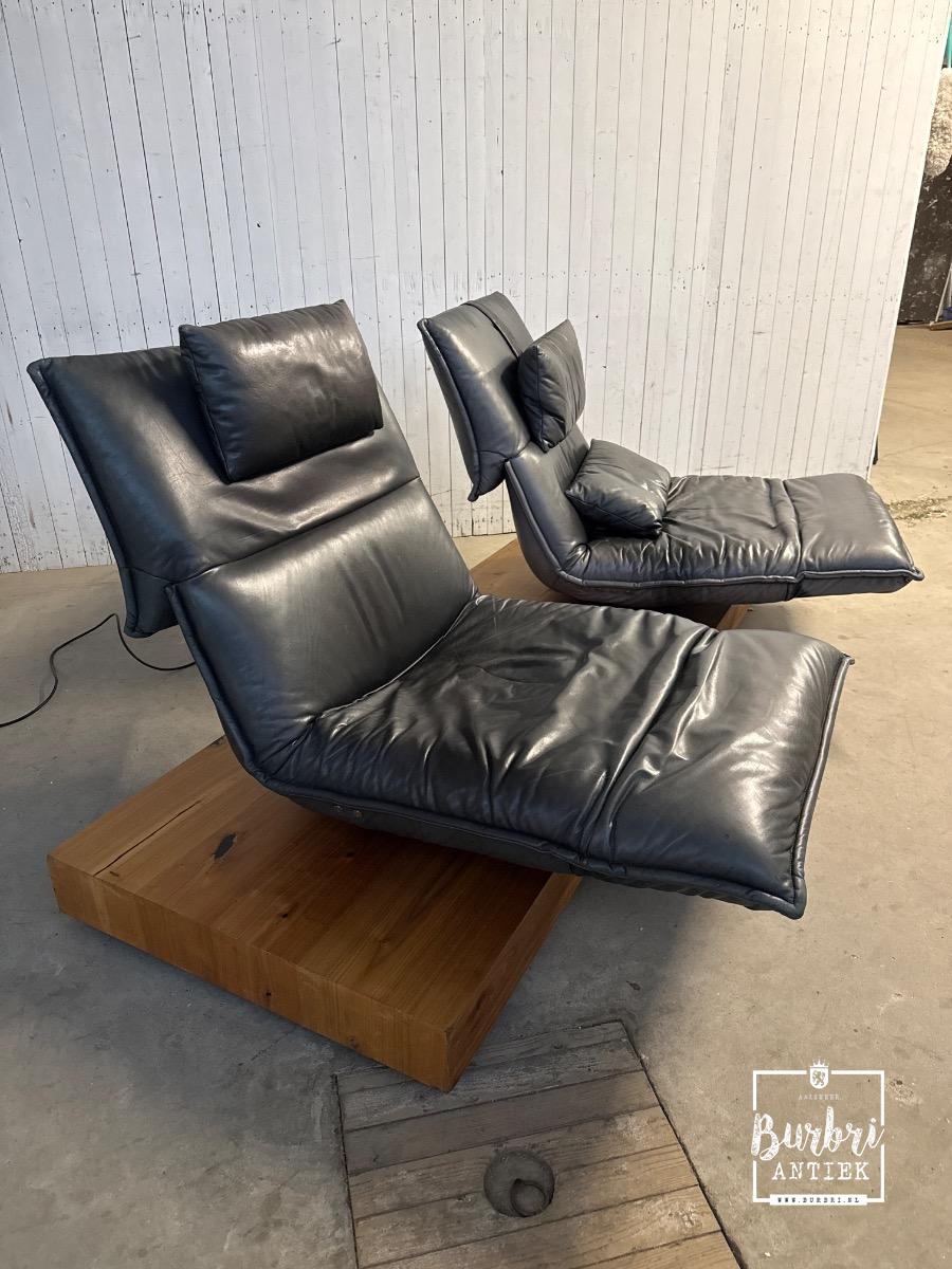 Prachtige Koinor Edit designbank te koop. Deze bank is van het bekende merk Koinor, dat bekend staat om exclusieve meubels van de hoogste kwaliteit en een modern design. De bank bestaat uit twee elektrisch verstelbare fauteuils, zowel links als rechts, en ook in zitpositie. Tussen de zitvlakken bevindt zich een draadloos oplaadstation voor telefoons. De bank is in goede gebruikte staat met gebruikssporen (zie foto'sintage style 2-way sofa in Wood and leather, in Good condition for sale in Design, Chairs and benches | Burbri