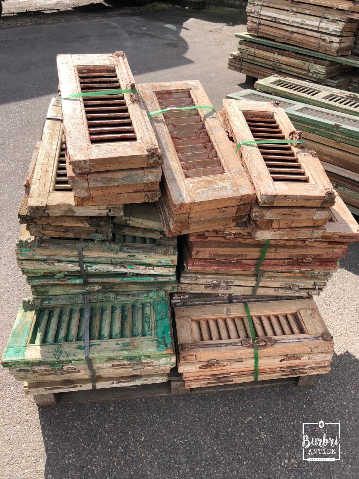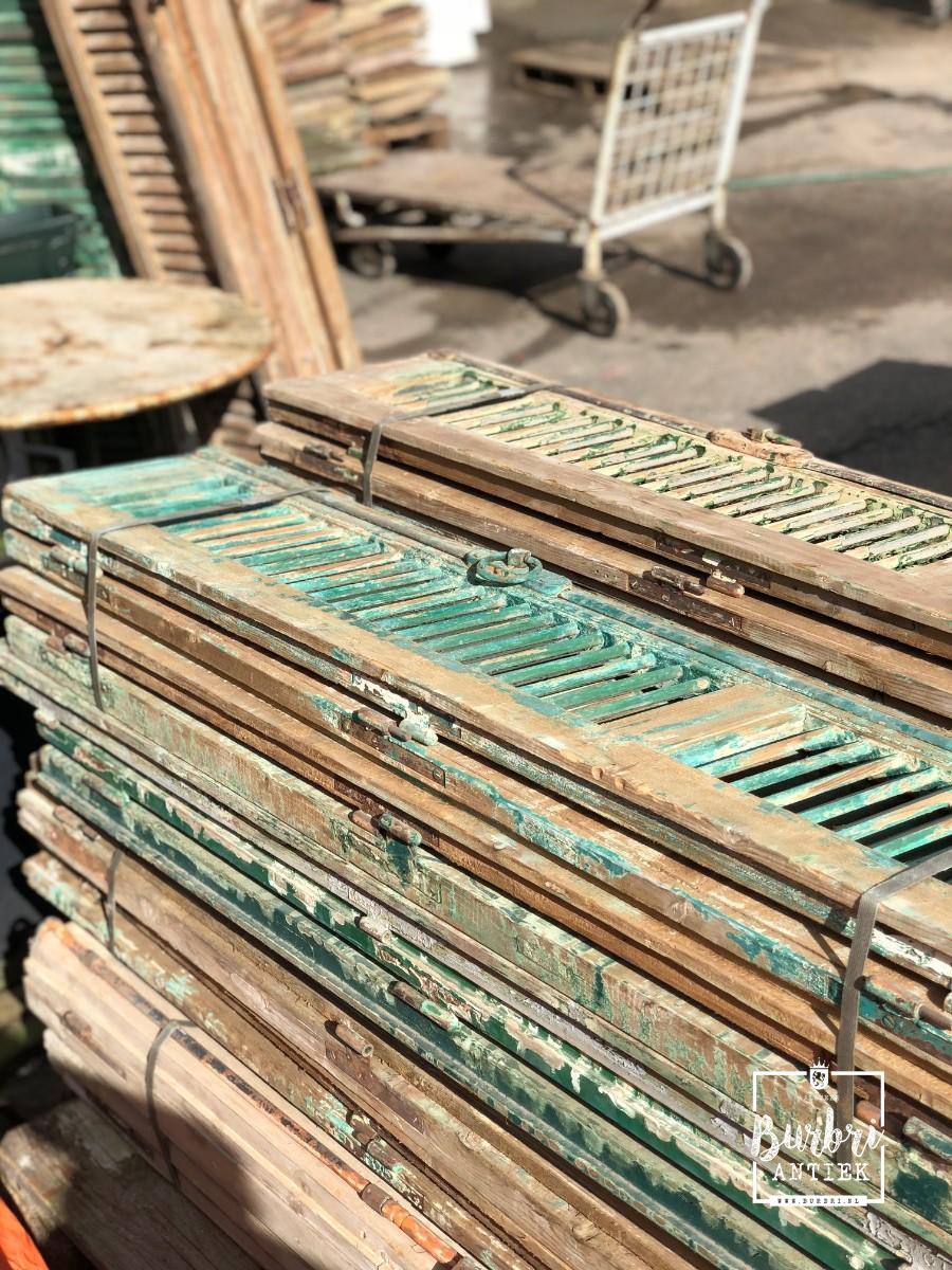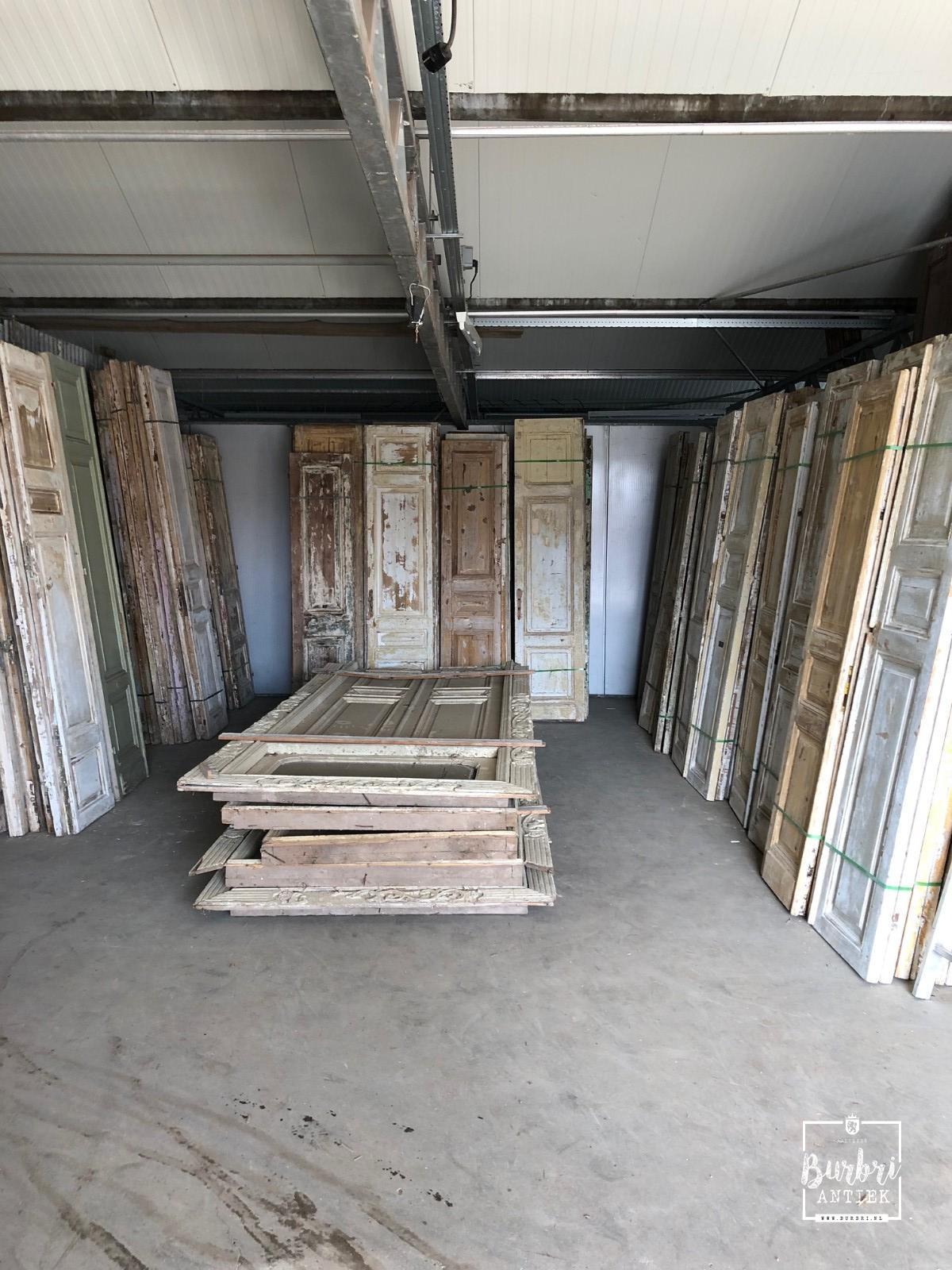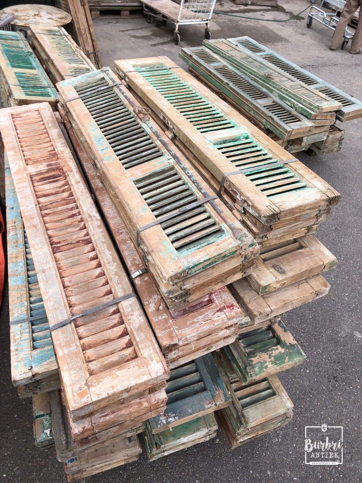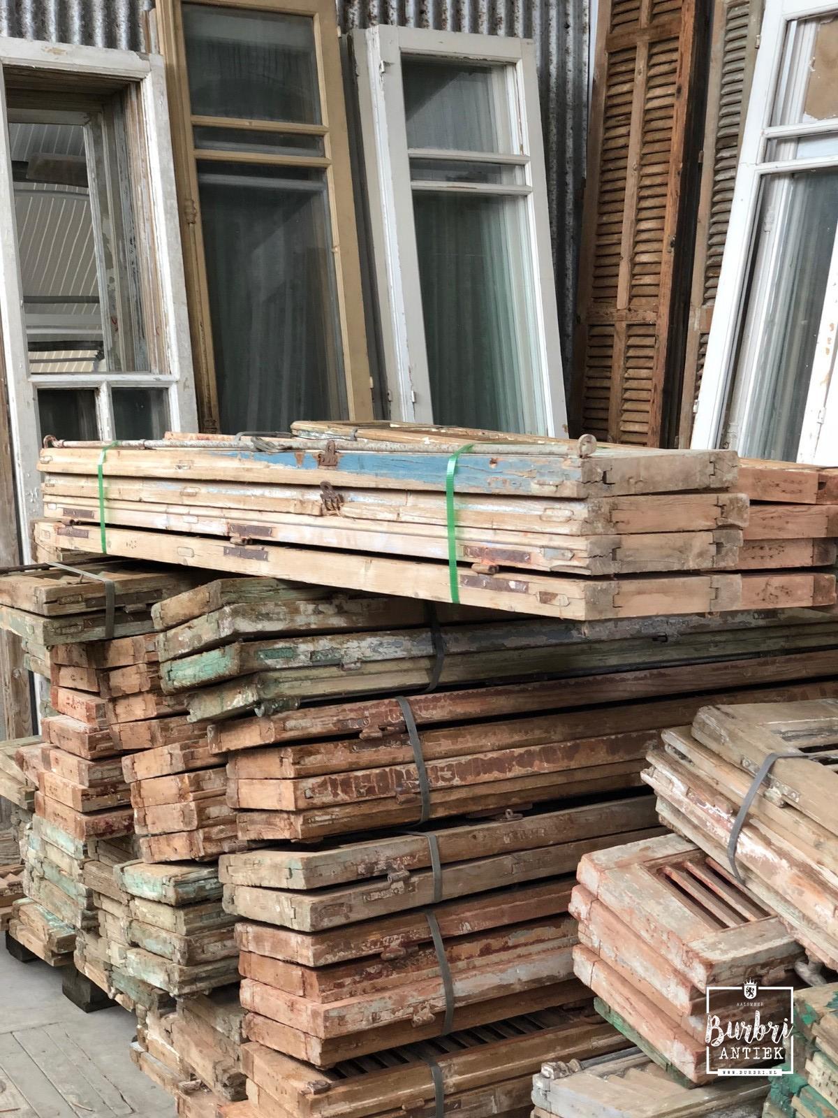 The much-anticipated container, filled with antique doors, shutters, louvre shutters, and building materials, will be unloaded at our location in Aalsmeer.